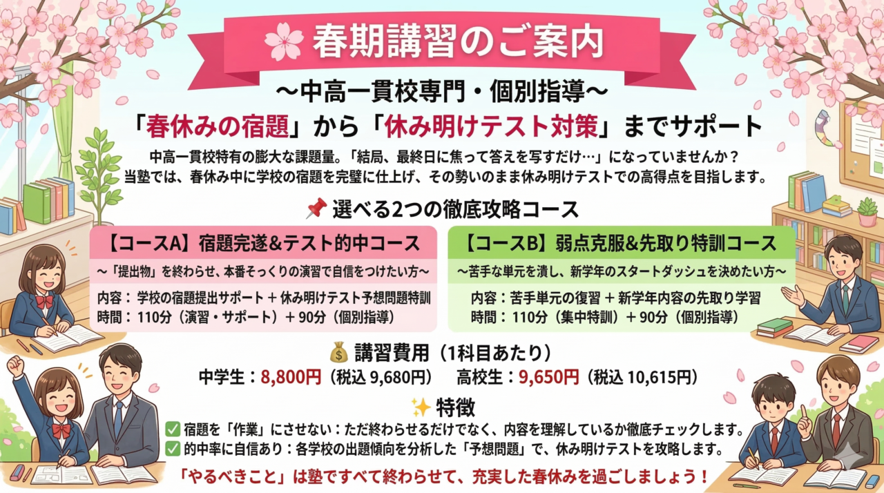 - 春夏冬休み中に学校の講習を受けるように言われたが、自分の志望校合格ための勉強と関連性が高い学習内容なのか不安